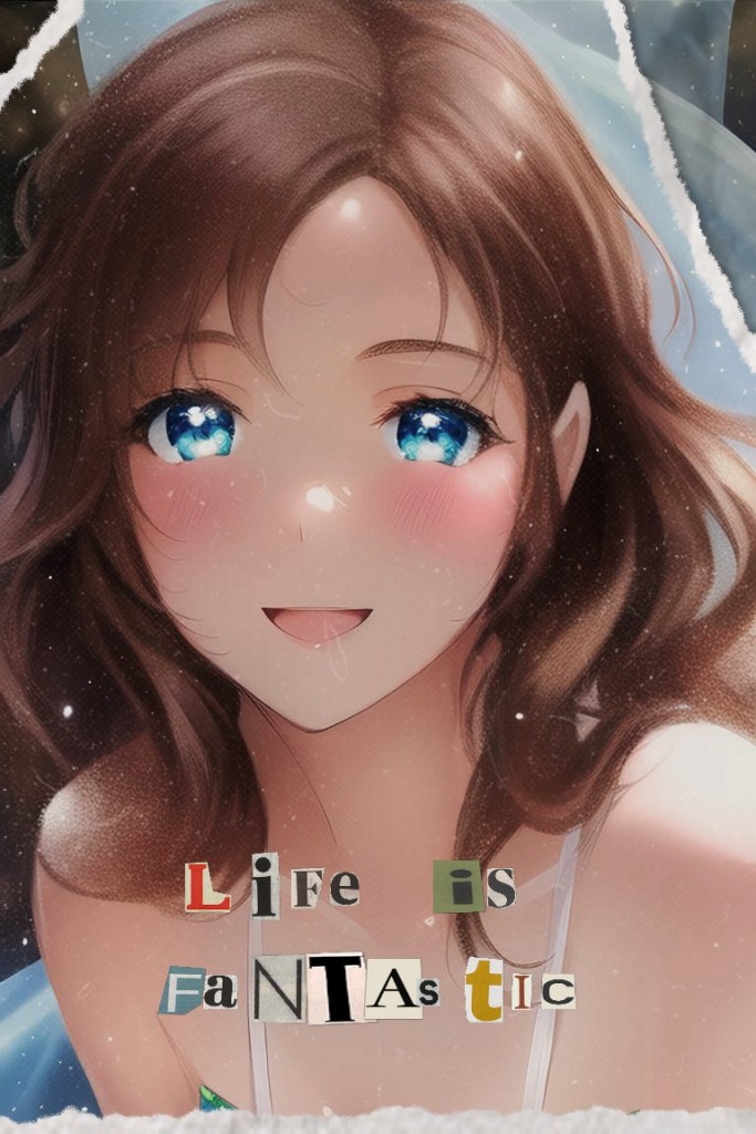 画像には「Life is faNTAstic」というテキストが重ねられており、個々のカラフルな文字で切り取られていて異なるスタイルが施されています。これは画像全体のデザインに遊び心と創造性を加えています。肯定的で楽観的なメッセージを示唆しているようです。
