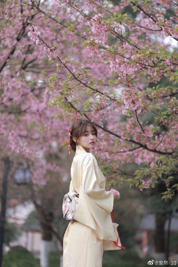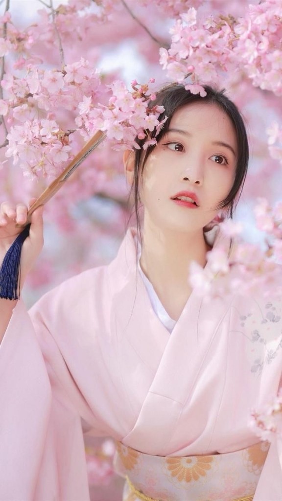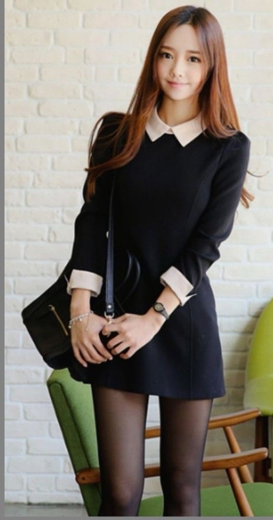 背景には、たっぷりと自然光が入るように設置された、シアーな白いカーテンのついた大きな窓があります。窓の外には、バルコニーが見えることから、部屋が建物の上階にあることを示唆しています。壁は白くて素地のままで、女性の洋服のシンプルさとエレガンスを引き立てる中立的な背景を提供しています。床は明るい木目デザインで暖かみを加えています。