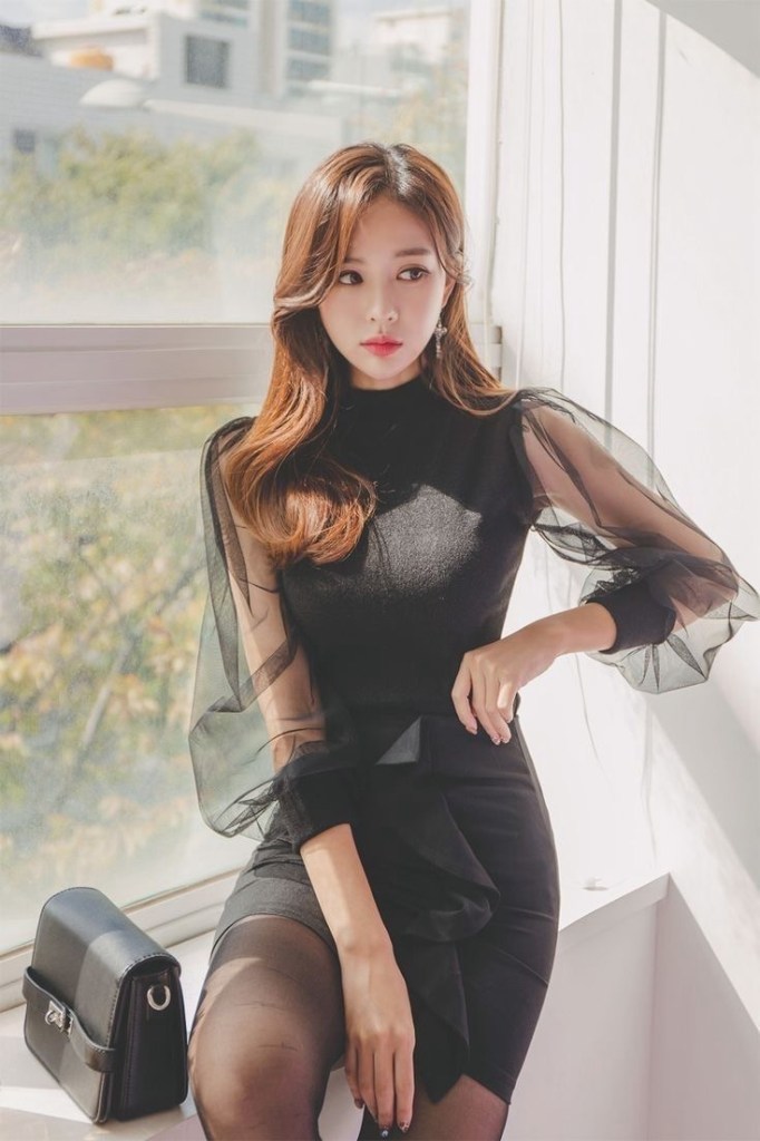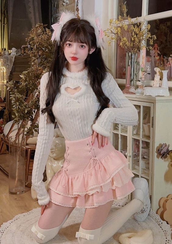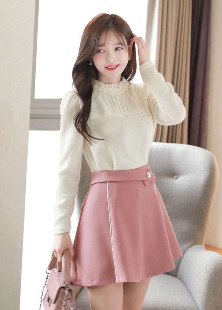 アクセサリーとして、頭には赤いベレー帽を被っており、シンプルでミニマリストなイヤリングも付けています。